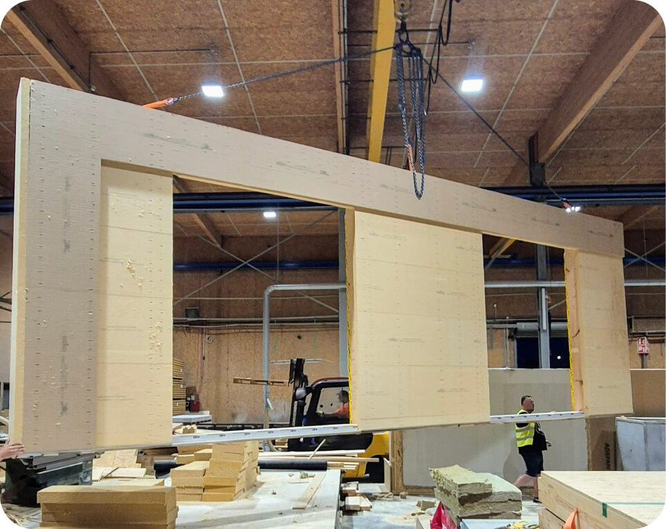 Wszystkie elementy domu powstają w nowoczesnej fabryce z zachowaniem najwyższej precyzji i powtarzalności. Wstępnie wykończone ściany i dach trafiają na działkę gotowe do montażu, co minimalizuje ryzyko błędów i skraca proces nawet o kilka tygodni.