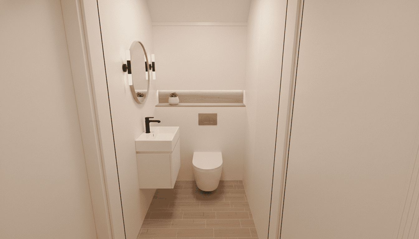 Pełna łazienka na parterze i WC na piętrze – komfort dla wszystkich domowników.