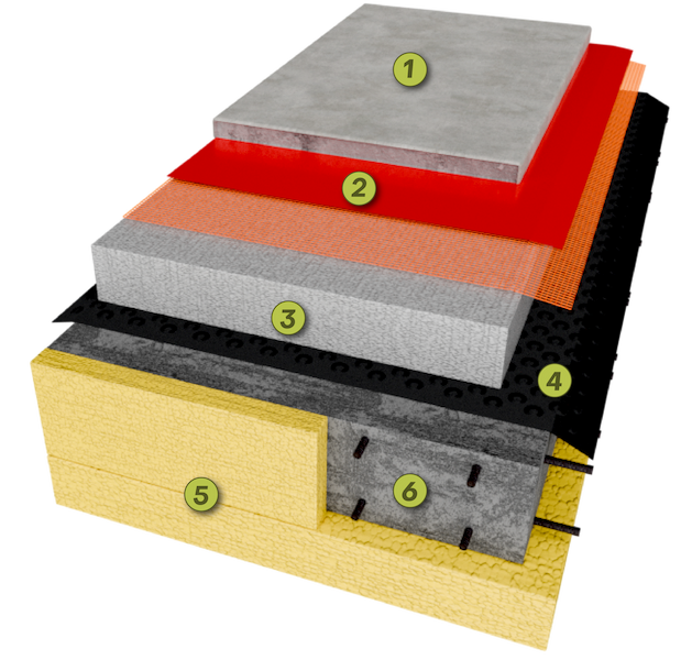 - Wylewka betonowa Zacierana mechanicznie, pływającą wylewka cementowa o grubości 60 mm. Oddzielona od konstrukcji budynku, co minimalizuje naprężenia i ryzyko pęknięć.